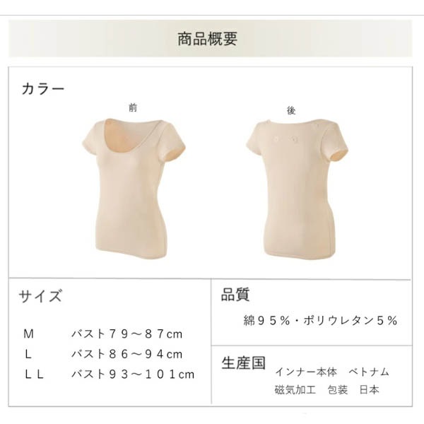 「マグネリラックス血行改善インナー(レディース) 肩用 半袖インナーTシャツタイプ」