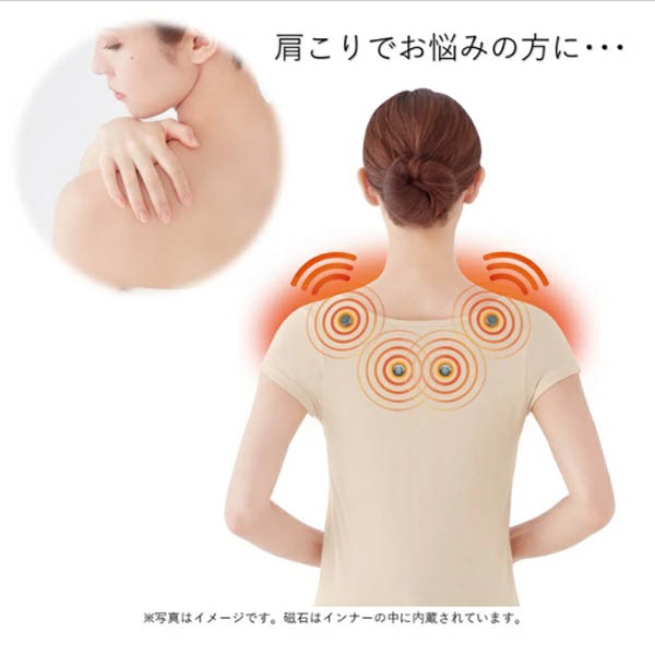 マグネリラックス血行改善インナー(レディース) 肩用 半袖インナーTシャツタイプ【予約販売・ご注文より3週間以内の発送予定】【磁気の力でコリの緩和と血行を改善】