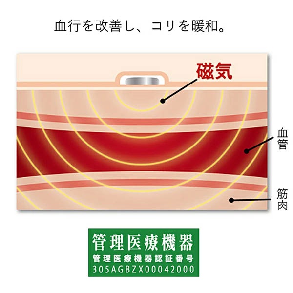 ・強力ネオジウム磁石を肩から肩甲骨周りにかけて4個配置。血行改善!コリをサポート!